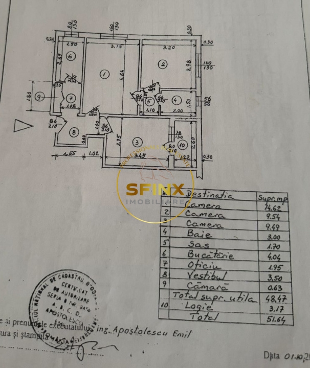Proprietatea este formata din 3 camere: living, 2 dormitoare, bucatarie, baie cu geam, hol, logie si debara.