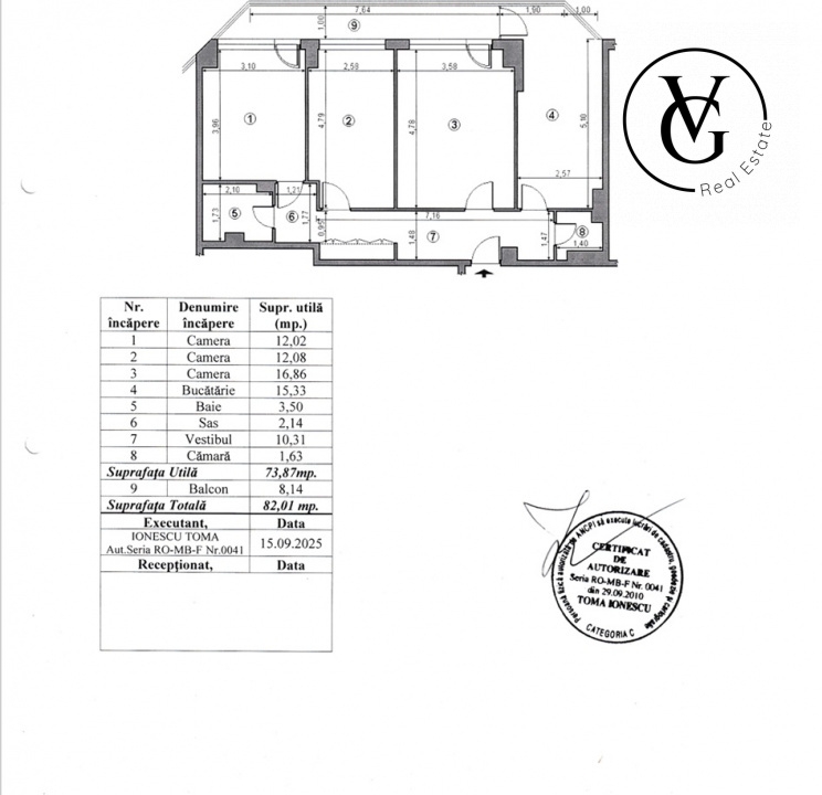 • Compartimentare: bucatarie, living, 2 dormitoare, baie, hol, balcon