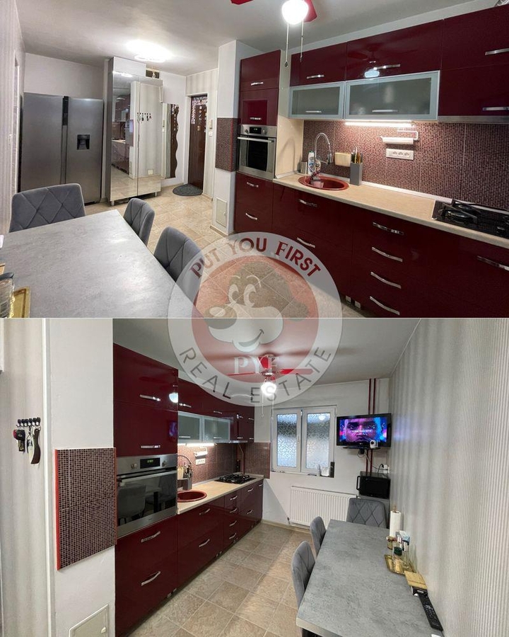 Dotari: calorifere: da; ferestre: pvc; incalzire: centrala proprie, termoficare; pereti: faianta, lavabil; podele: parchet, gresie; usa intrare: metal
