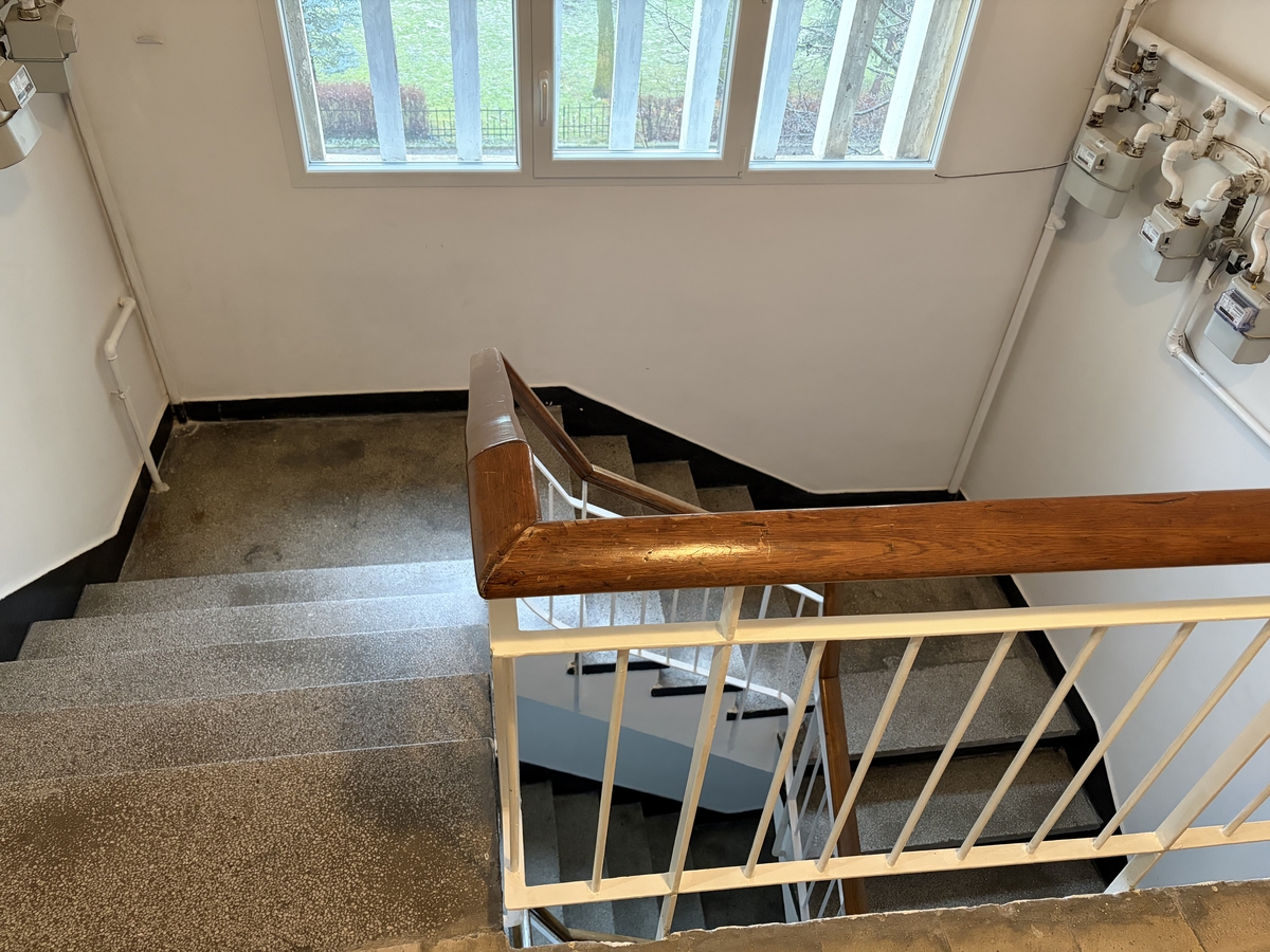 Apartamentul are o suprafata utila de 59 mp +1 balcon inchis in termopan 4,30 m, 33 mp teren in proprietate- cota indiviza, necesita renovare totala, are parchet masiv de stejar in stare buna, fara alte imbunatatiri. Cladirea este solida, fara risc seismic, vedere stradala catre parc si spate, est-vest, zona verde, linistita.