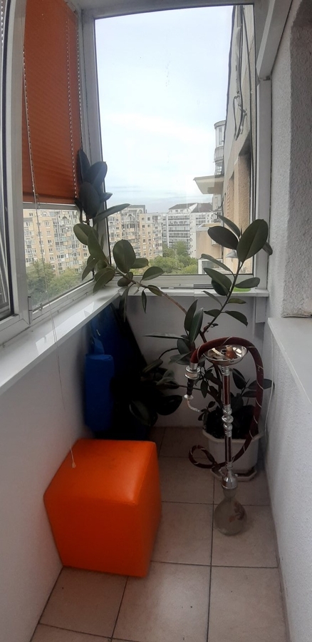 Balcon mare dispus pe living si pe dormitorul mare, inchis cu tamplarie PVC cu geam termopan.