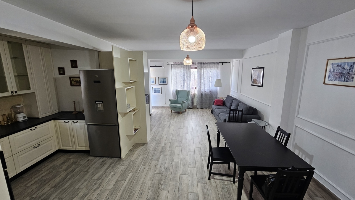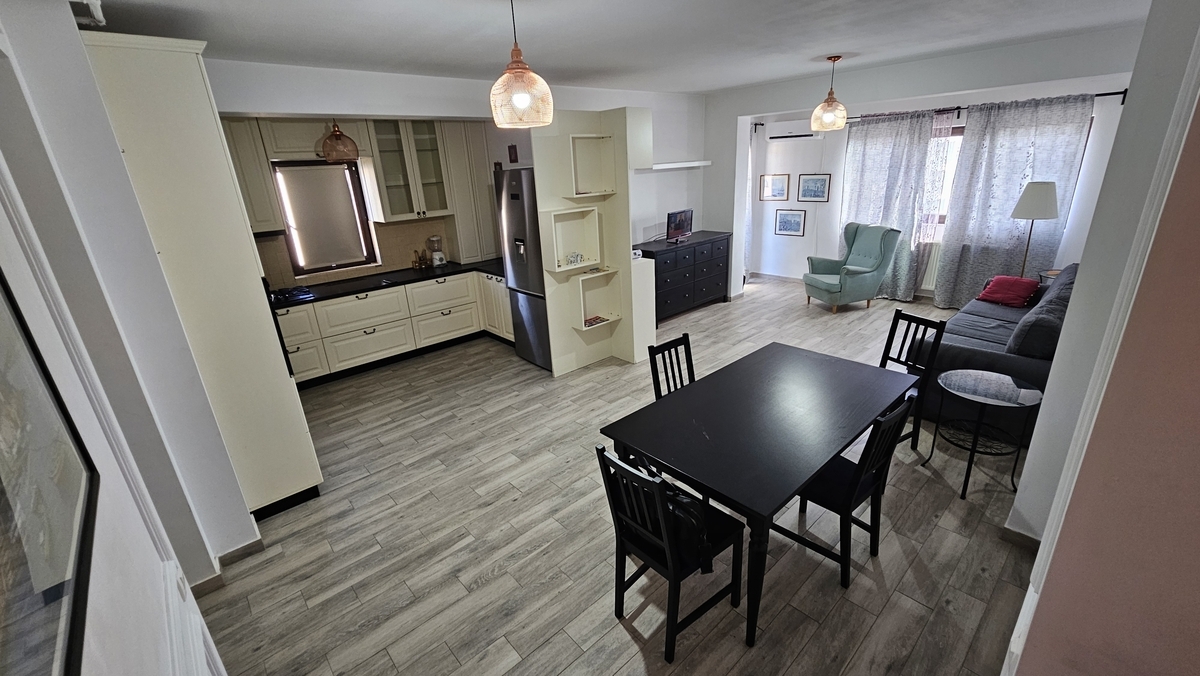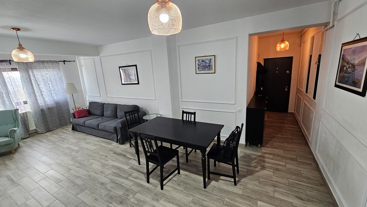 apartament trei camere 79 mp spatios, luminos, 2 balcoane dintre care unul inchis, etaj 3/6, bloc cu lift construit in 2016, centrala termica, aer conditionat, se vinde mobilat/utilat, zona linistita fara trafic, 15 minute metrou 1 Decembrie, piata Trapezului, Lidl. Nu se percepe TVA!