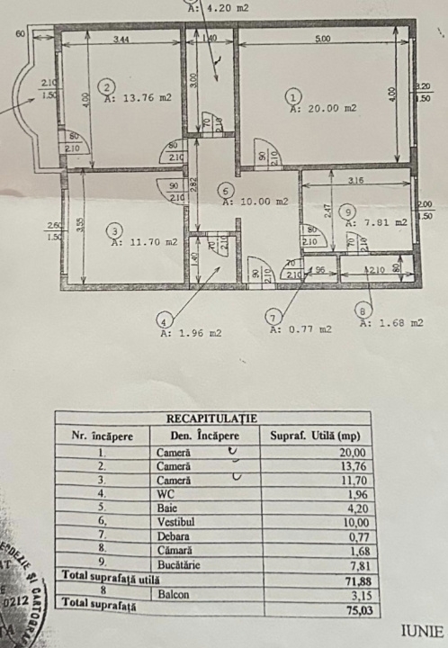 Apartamentul are o suprafata totala de 75,03 mp, din care 3,15 mp balcon si 71,88mp utili si dispune de Centrala Proprie si de 3 aparate de aer conditionat.