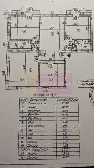 Suprafata Utila: 89 mp + 2 balcoane inchise (7 mp) = 96 mp Suprafata Totala a se vedea plan atasat.