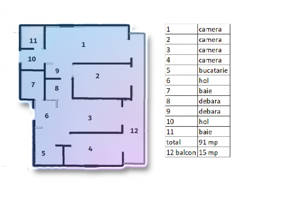 Locuinta are o suprafata utila de 91 mp, la care se adauga un balcon generos de 15 mp, cu acces din fiecare camera, oferind lumina naturala si deschidere excelenta.