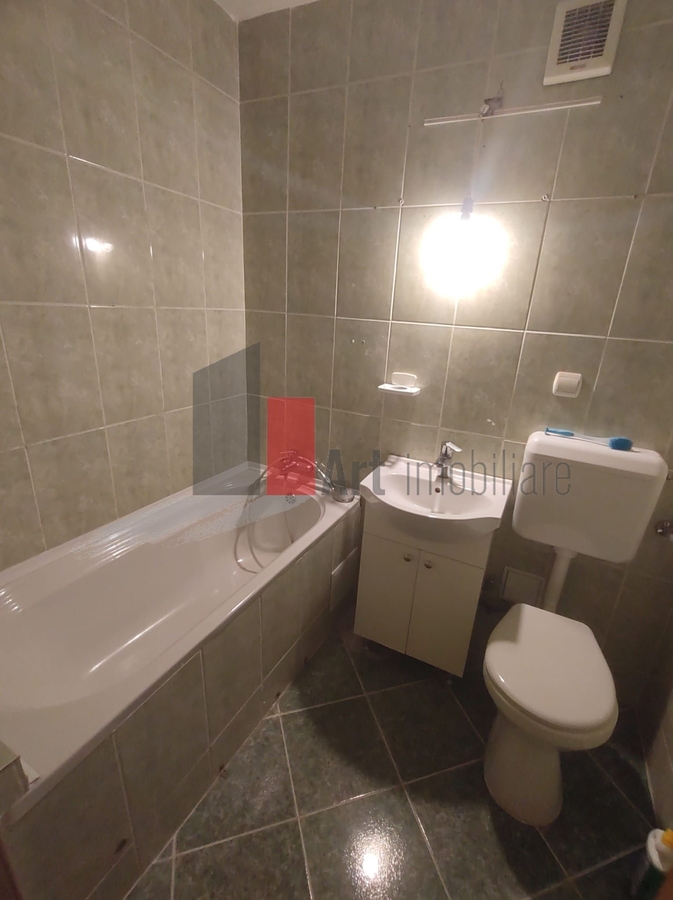 Aflat la etajul 3/4, locuinta are 2 bai si un balcon inchis, tip logie, de 3,4 mp.