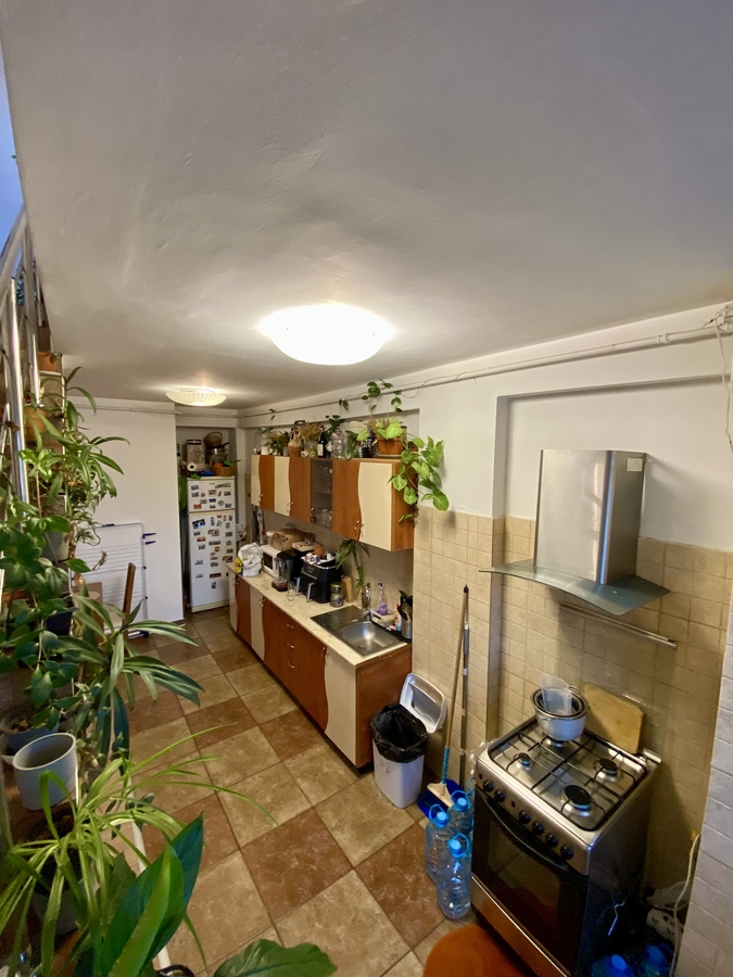 Apartamentul a fost regandit impreuna cu un arhitect pentru a putea oferi o experienta complexa.Bucataria este facuta pe comanda, este dotata cu frigider, masina de spalat, microunde, aragaz si hota suficient de puternica pentru a capta tot aerul viciat.