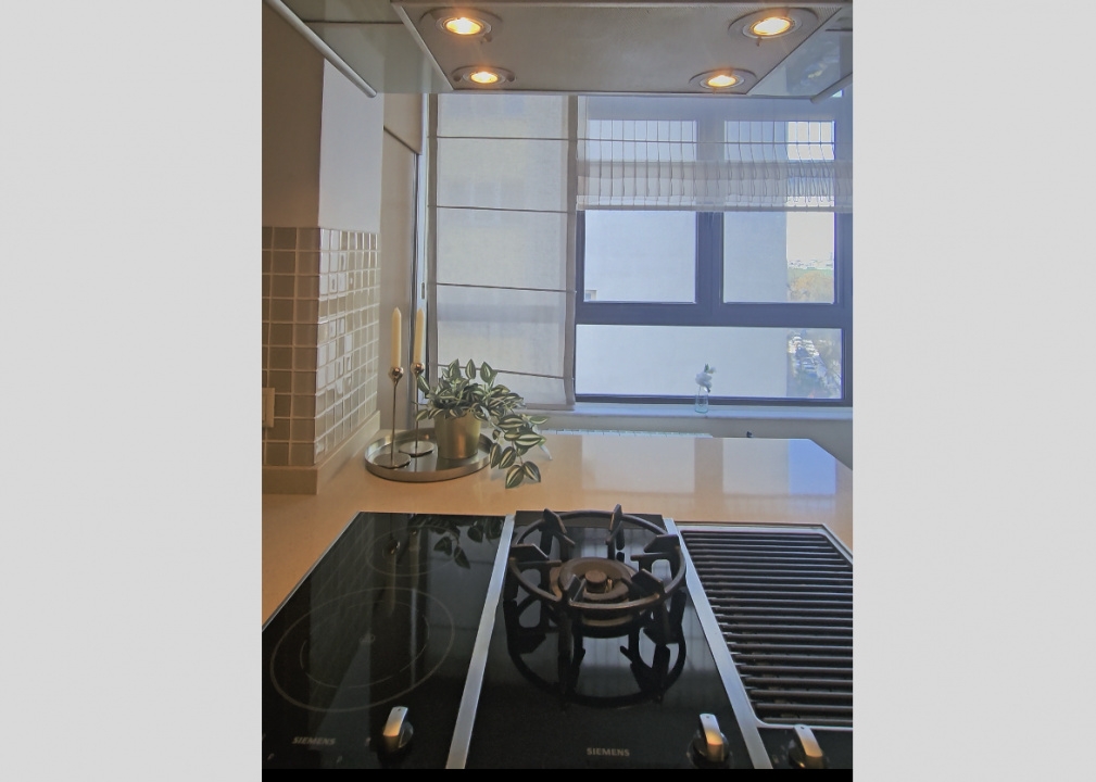 — Bucataria – cel mai spectaculos spatiu din acest apartament - se deosebeste prin spatialitate, calitatea mobilierului proiectat si realizat la comanda in Turcia si smultitudinea spatiilor de depozitare