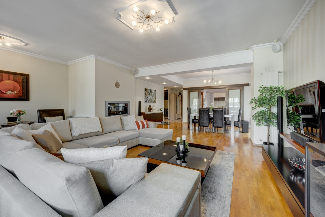Daca te grabesti si nu ai timp sa parcurgi toate detaliile, pe scurt, iti propunem un apartament de patru camere, cu o suprafata de 171 mp, 3 terase generoase si un loc de parcare, situat in zona centrala, la 2 pasi de statia de metrou, la doar 2.600 euro + TVA/mp util; apartamentul se impune prin spatii ample, sauna, dotari tehnice si finisaje de top, electrocasnice premium si centrala termica nou-nouta. Ce ti-ai putea dori mai mult de la o locuinta urbana completa?