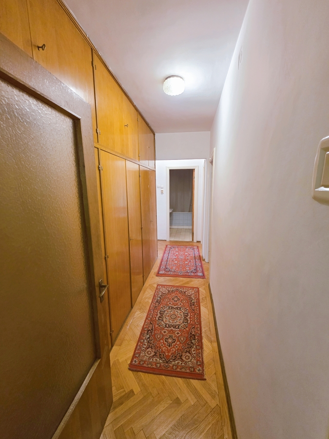 Apartamentul are 2 grupuri sanitare, o debara foarte mare, nu a suferit modificari de compartimentare in interior (il face eligibil pentru accesarea unui credit ipotecar), are un balcon mare pe 2 camere, parchet masiv in stare foarte buna, tamplarie pvc, usa metalica, 2 aparate de aer conditionat Samsung, usa metalica antiefractie.