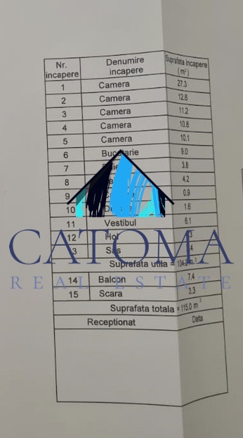 Suprafata totala: 115 mp, cu peste 104 mp utili interiori.