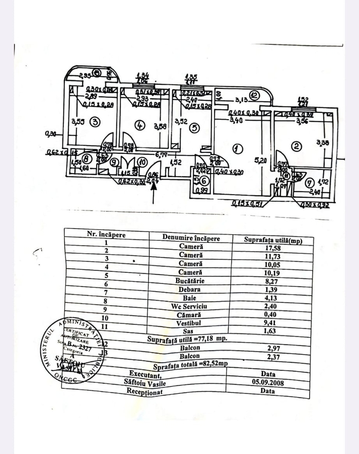 - Este compartimentat cu 3 dormitoare, 2 bai, o sufragerie, o bucatarie, hol intrare generos si 2 balcoane inchise si izolate termic in exterior.