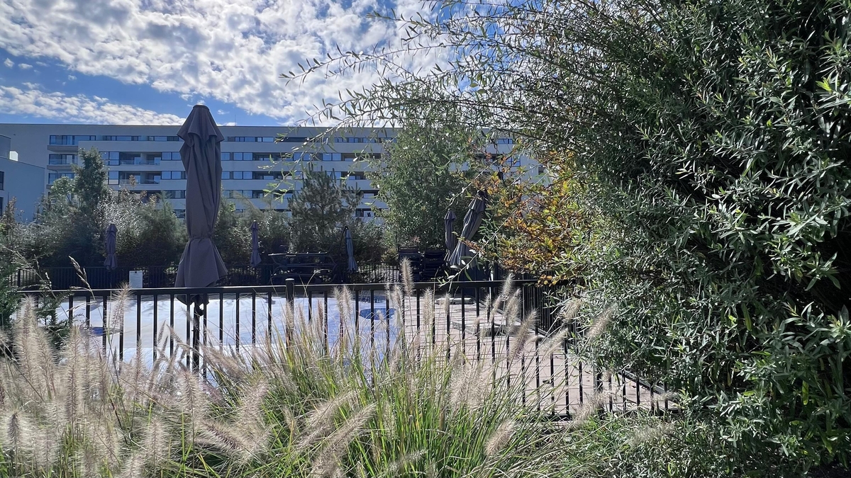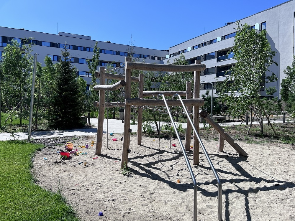 - Zone verzi extinse. S-au plantat tot atatia copaci cate apartamente s-au construit (raport 1:1 copaci-apartamente). Parcuri interioare, locuri de joaca pentru copii, design peisagistic unitar. Alei. Peluze. Piscine exterioare in fiecare faza (ingradite pentru siguranta copiilor). Parcari supraterane. Comunitate activa, majoritatea proprietari, familii tinere. Cai de acces in complex securizate (bariera si paza umana).