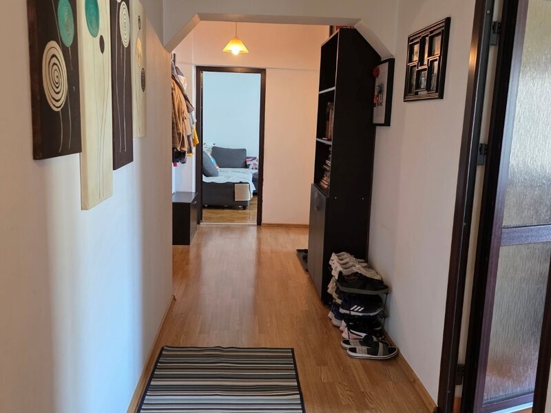 Apartamentul este la etajul 7, are 2 grupuri sanitare din care una cu geam, 2 balcoane, este renovat, partial mobilat si utilat modern, instalatiile sanitare schimbate, gresie, faianta, parcher, termopane si usa metalica.