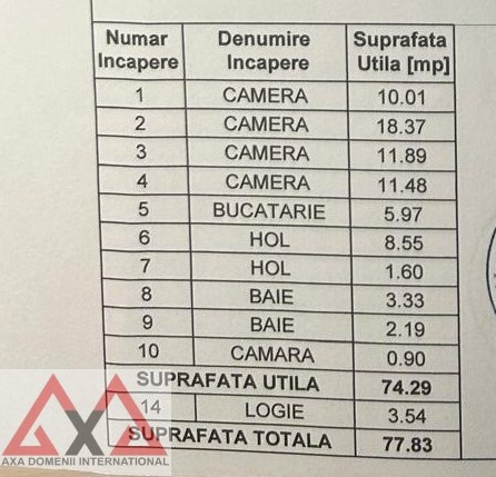 Compartimentarea este semidecomandata, avand o suprafata totala de 77,83 mp, doua grupuri sanitare (baia mare cu geam) si spatii de depozitare (vezi schita atasata).