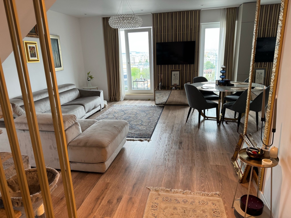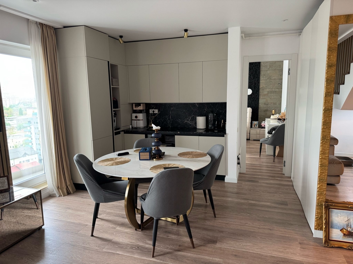 Imobiliare Solutions Group va ofera spre vanzare un penthouse de 4 camere, cu o suprafata utila de 160 mp + 60 mp terasa intr-un imobil finalizat in anul 2023. Apartamentul este compus dintr-un living cu bucatarie deschisa, 3 dormitoare, 2 grupuri sanitare, 2 balcoane si o terasa. Acesta se vinde mobilat si utilat complet, tot mobilierul fiind facut la comanda. Posibilitate loc parcare.