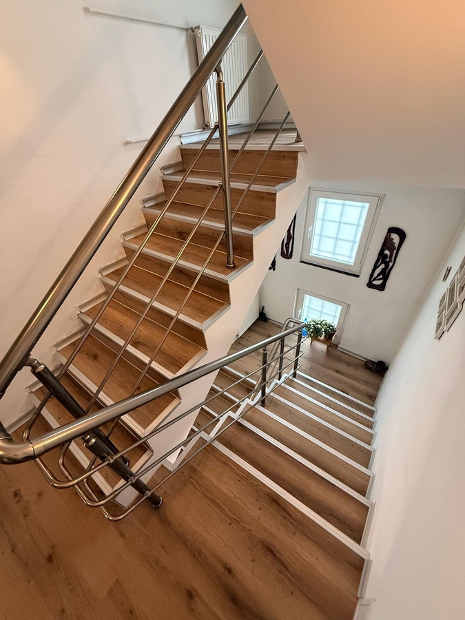 Parter: living spatios plus bucatarie deschisa, dormitor cu baie proprie, baie de serviciu.