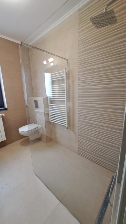 S-au folosit numai materiale de prima calitate: Caramida poroterm, la exterior izolatie 10cm polistiren, invelitoare la acoperis Wetterbest, tamplarie termopan cu triplu geam (tripan), centrala termica Weissman., aer conditionat. Si un mare plus: Panou solar Feroli pentru apa calda. Vara nu pornesti centrala termica!