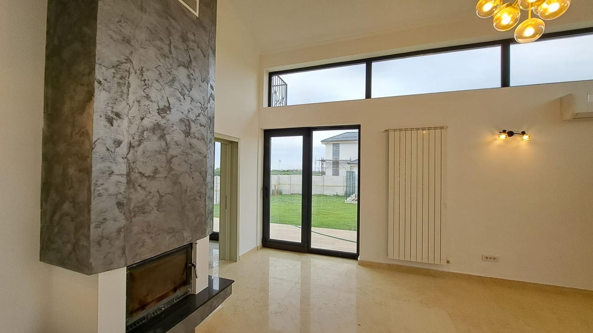 In inima unei zone linistite din Balotesti (Saftica), pe strada Lahovari 10C, aceasta vila contemporana P+1, construita in 2025 care combina calmul, lumina si rafinamentul, la mai putin de 20 minute de centrul Bucurestiului, ofera camere spatioase si luminoase, un living imens cu un semineu unic ca design.