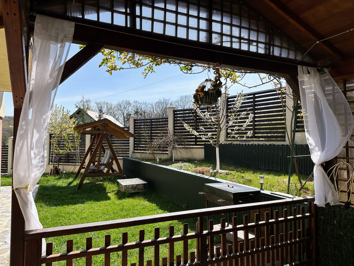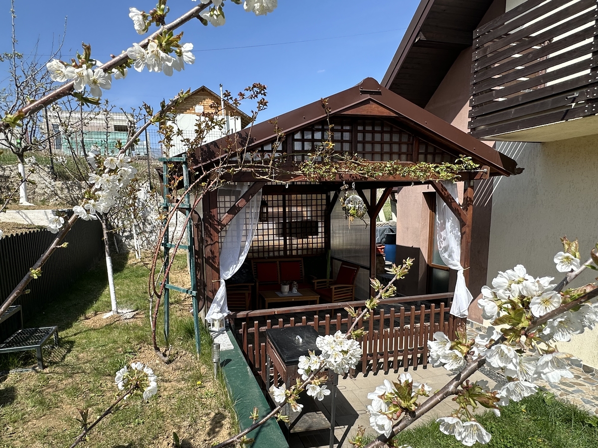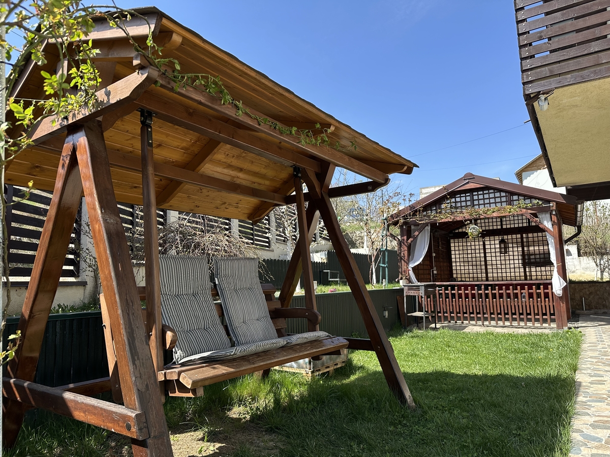 - Foisor spatios, leagan elegant si curte plina de flori si pomi fructiferi.