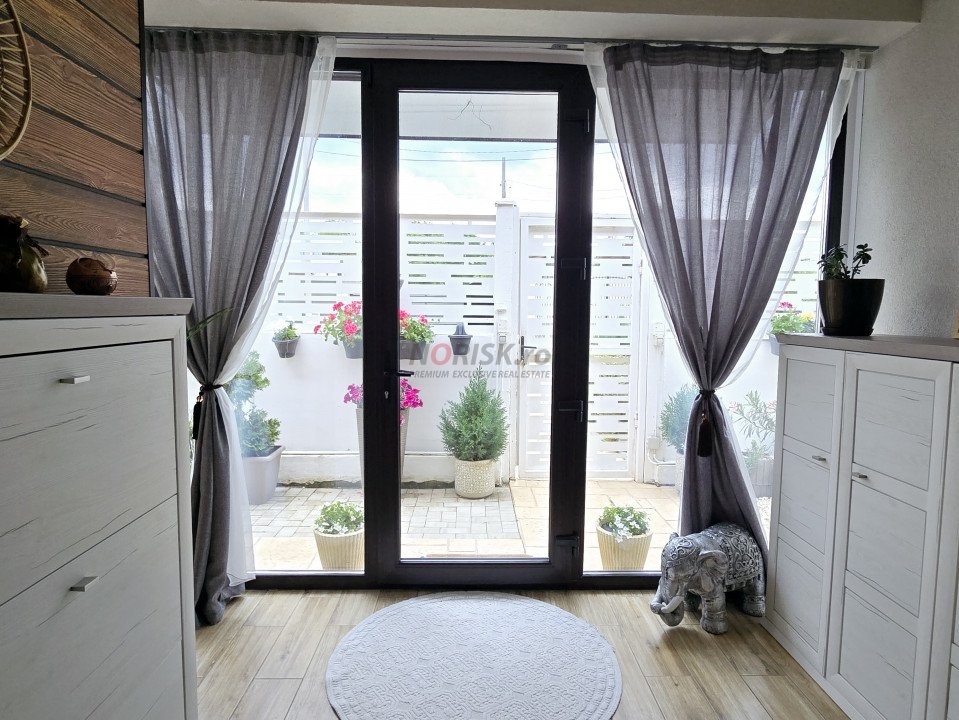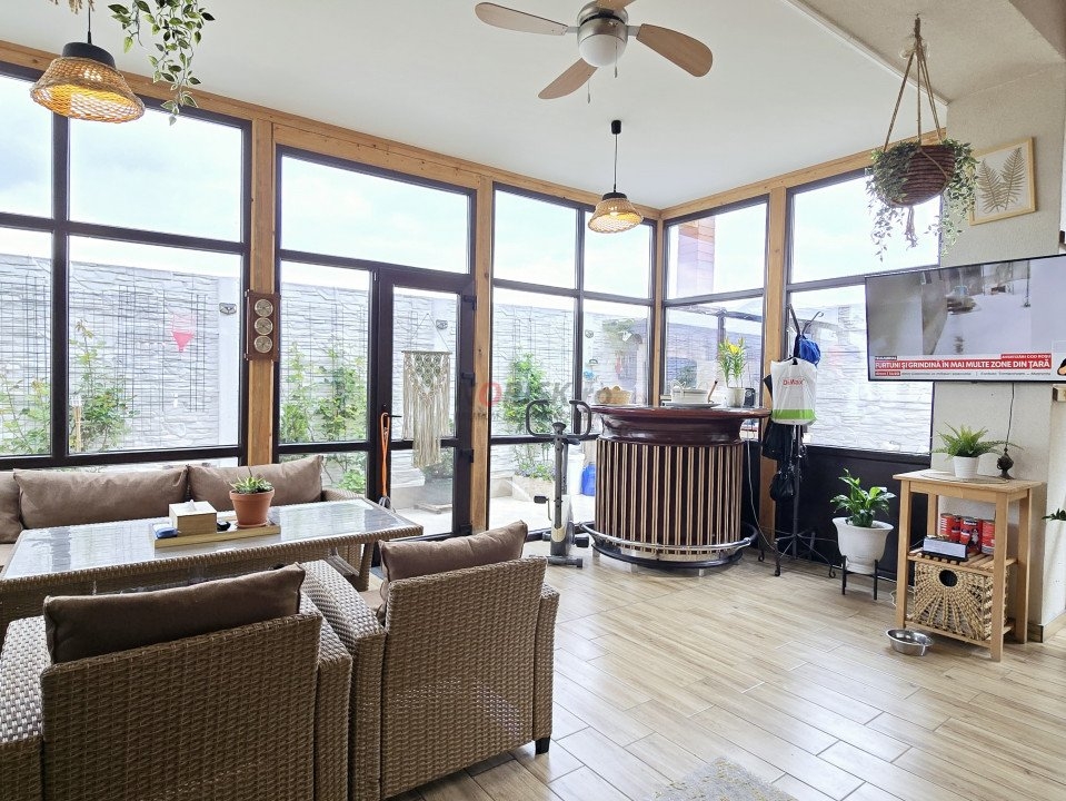 Exteriorul este complet amenajat, cu alei pavate, spatii verzi, flori, zona de gratar cu plita, casuta pentru depozitare si gard modern, totul pregatit pentru timp de calitate in aer liber.