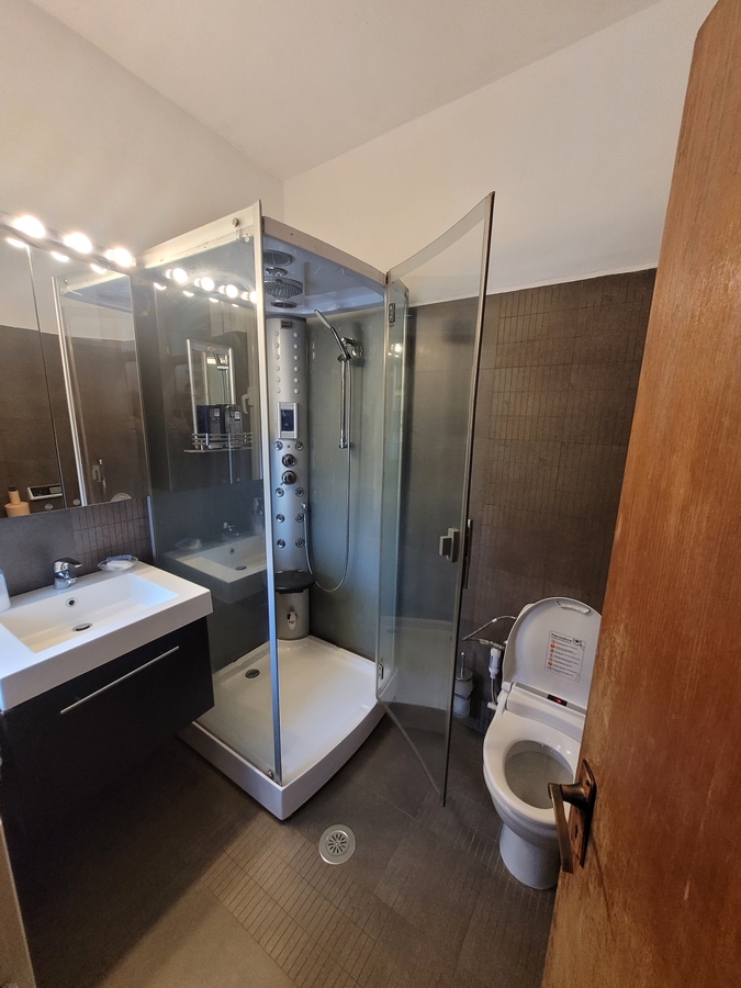 parter - hol acces, baie cu dus (cu abur si masaj), bucatarie, si living