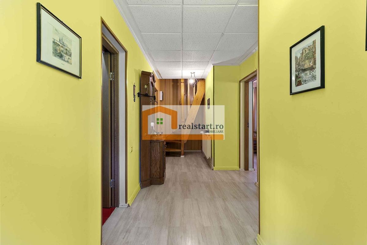 - zona de living se bucura de un semineu cochet, zona de canepele si o zona vitrata mare catre terasa ce asigura o priveliste frumoasa indiferent de anotimp.