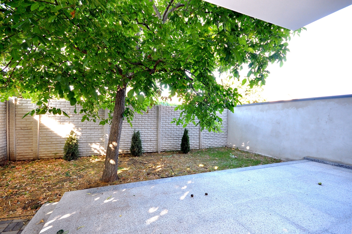 Parterul dispune de living 42 mp, dormitor 14 mp, bucatarie 8 mp, baie, dresing si terasa acoperita.