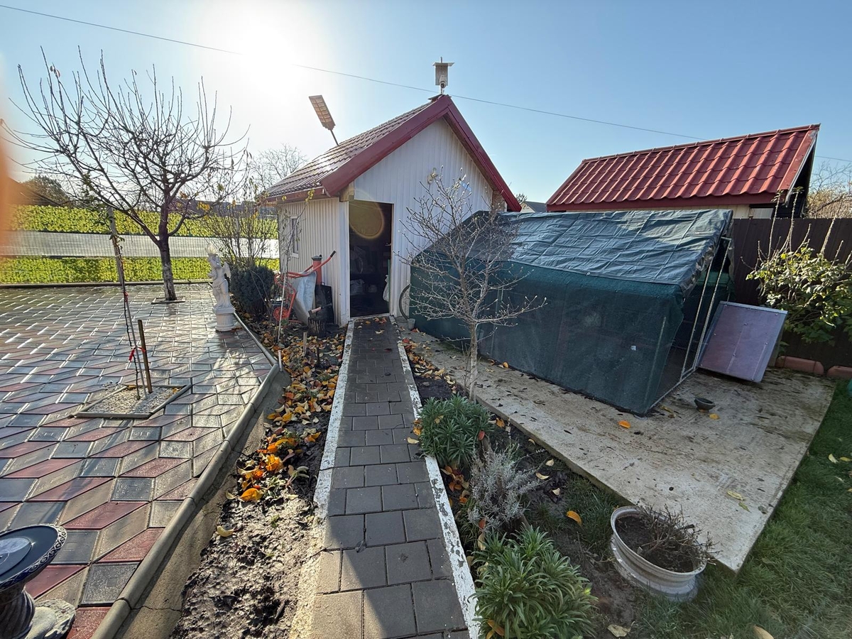 In gradina,o casuta cu beci betonat 3 mX3 m+2 Voliere 4 mX3 m,