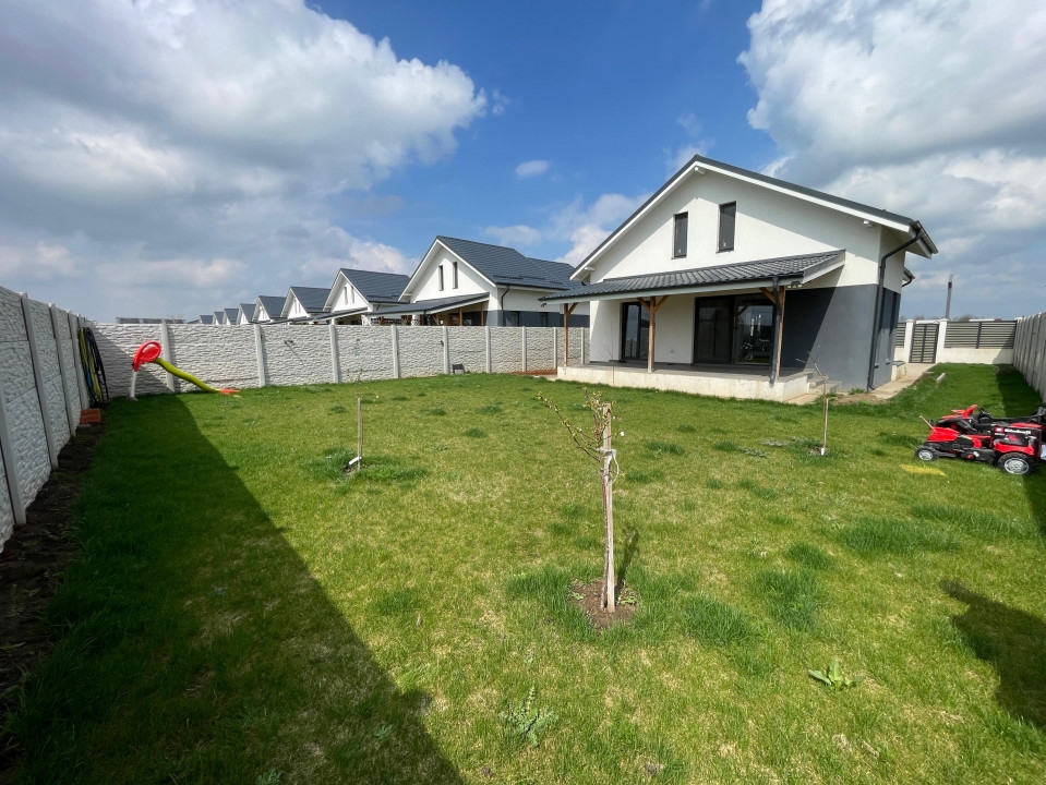 Casa are o curte generoasa de 456 mp, o deschidere de 15m cu gard de beton curte libera atat in fata casei cat si in spatele ei, unde gasiti o terasa acoperita de 20 mp.