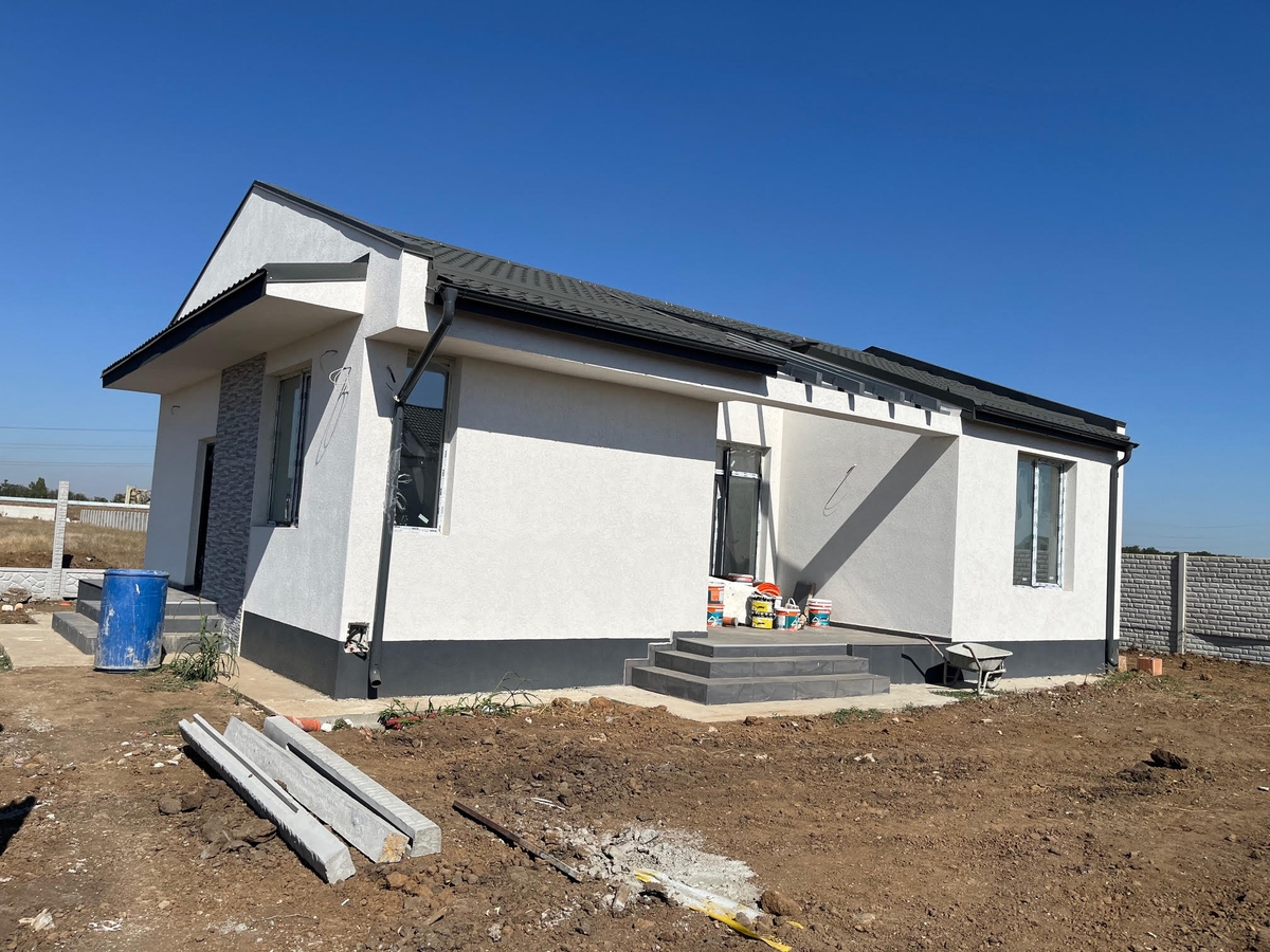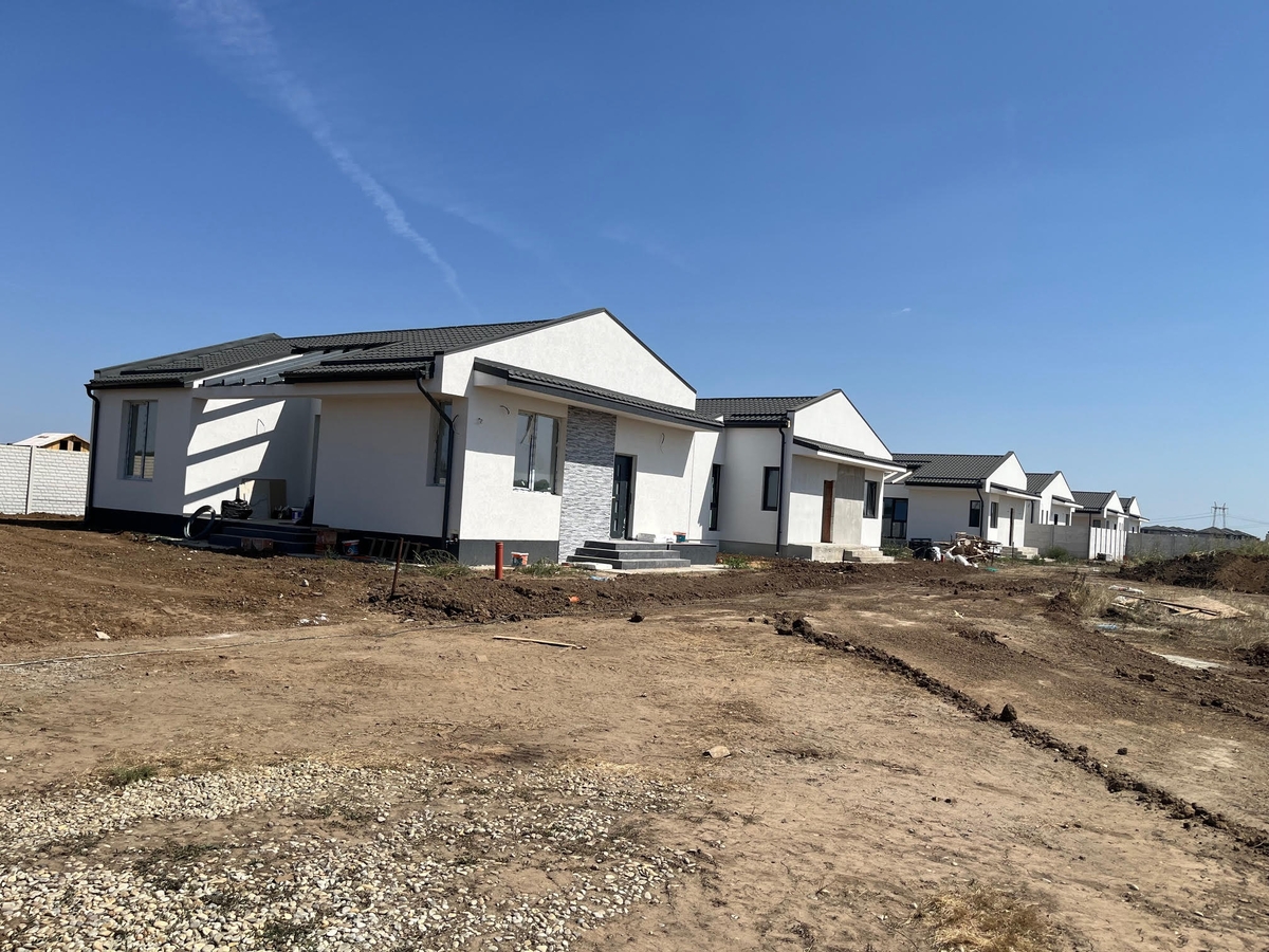Proprietar va propune un ansamblu de case noi, parter+pod, situate la intrarea in comuna Berceni, pe str. Miorita. Casele au o suprafata de 103 mp utili+14 mp terasa si un pod de depozitare de 60 mp. Fiecare casa are un teren de 448 mp. Casele dispun de living si 3 dormitoare, camera tehnica, bucatarie si 2 bai,se vand complet finisate la cheie, bransate la utilitati (curent si gaze naturale), fiecare dispune de un pot forat la 21 m adancime si de o fosa septica ecologica cu drenaj. Finisaje exterioare: tigla metalica gri-antracit; polistiren expandat 10 cm EPS 80, vopsea decorativa Duraziv TDS 2,5 mm, tamplarie PVC Rehau cu sticla "four seasons".