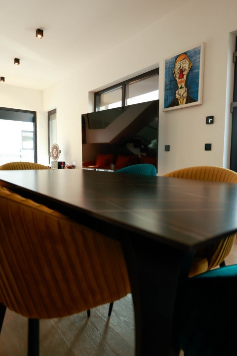 Vila este dispusa pe Parter + etaj 1, dispune de 4 camere si 3 dormitoare,3 bai, suprafetele generoase, curte spatioasa amenajata cu gazon.