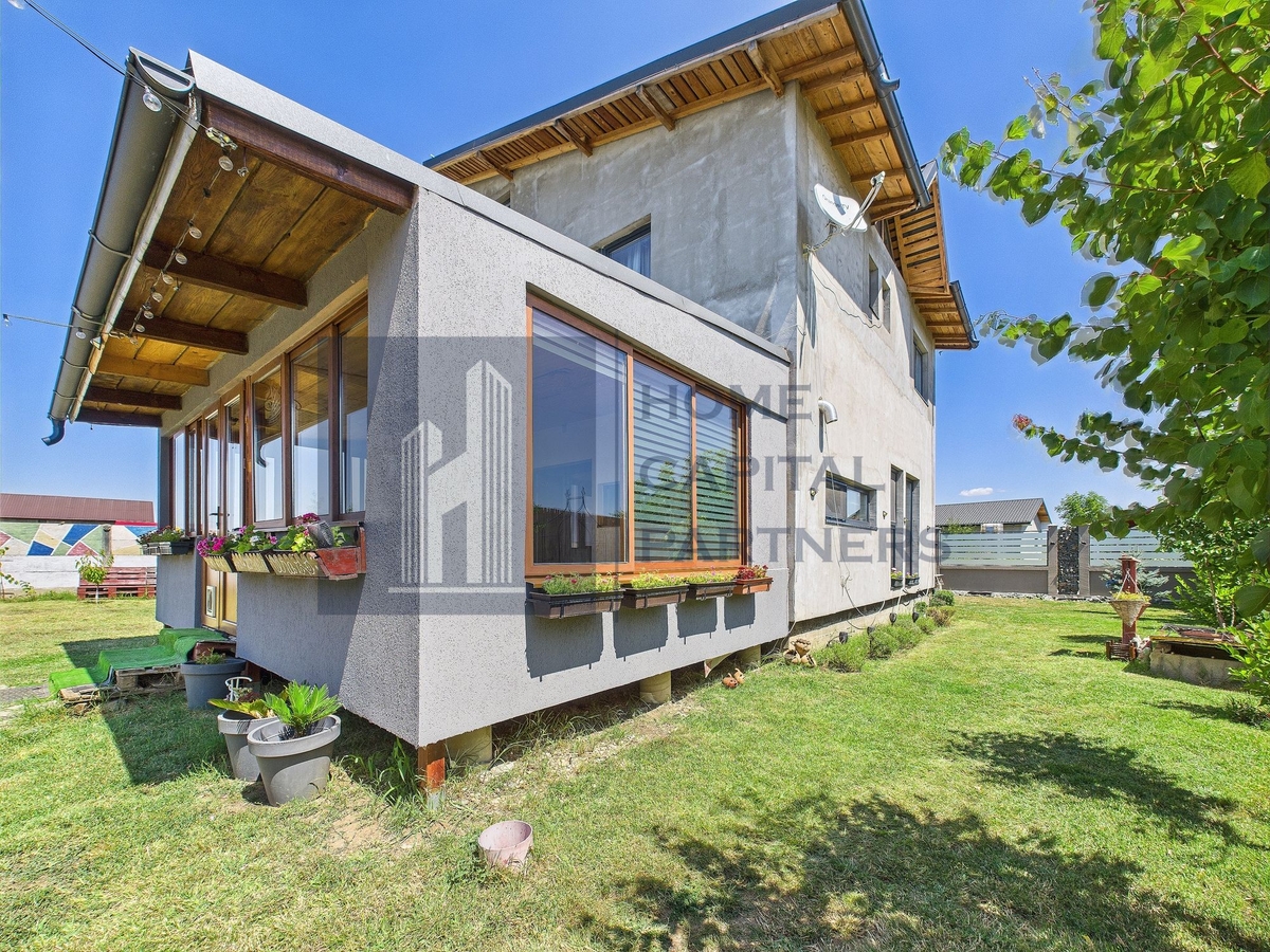 Proprietatea beneficiaza de aer conditionat, centrala electrica, centrala pe peleti si panouri solare, oferind costuri reduse si independenta energetica. Curtea generoasa poate fi amenajata ca gradina, zona de relaxare sau spatiu de joaca pentru copii.