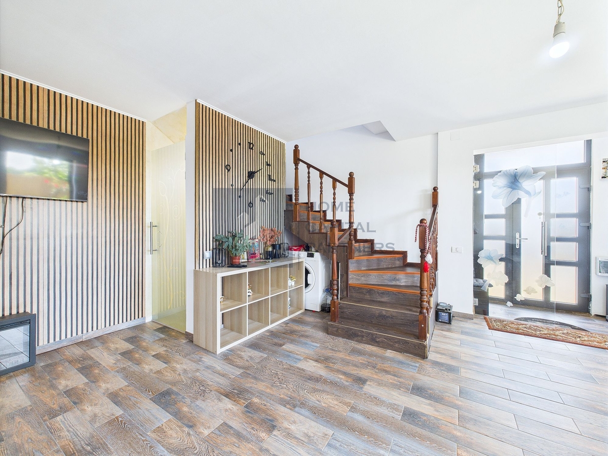 Parterul include livingul spatios, locul de luat masa, bucataria si o baie de serviciu, in timp ce etajul este rezervat zonei de noapte, cu doua dormitoare luminoase si doua bai. Finisajele sunt de calitate, iar fiecare spatiu a fost gandit pentru confortul zilnic.