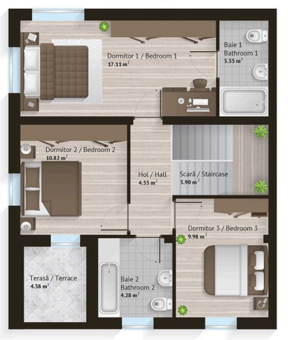 Gradina este amenajata modern si dispune de instalatie de irigare.