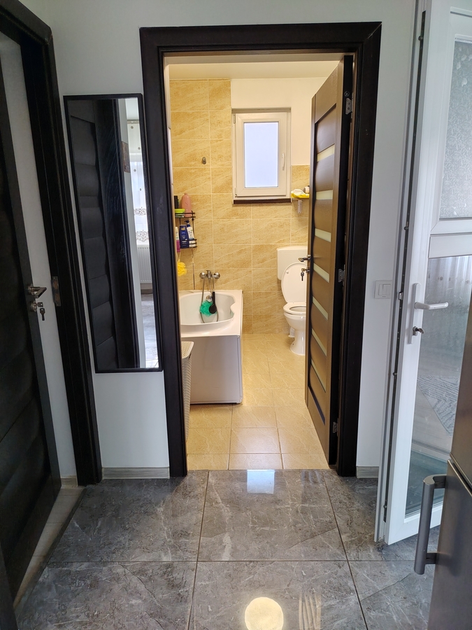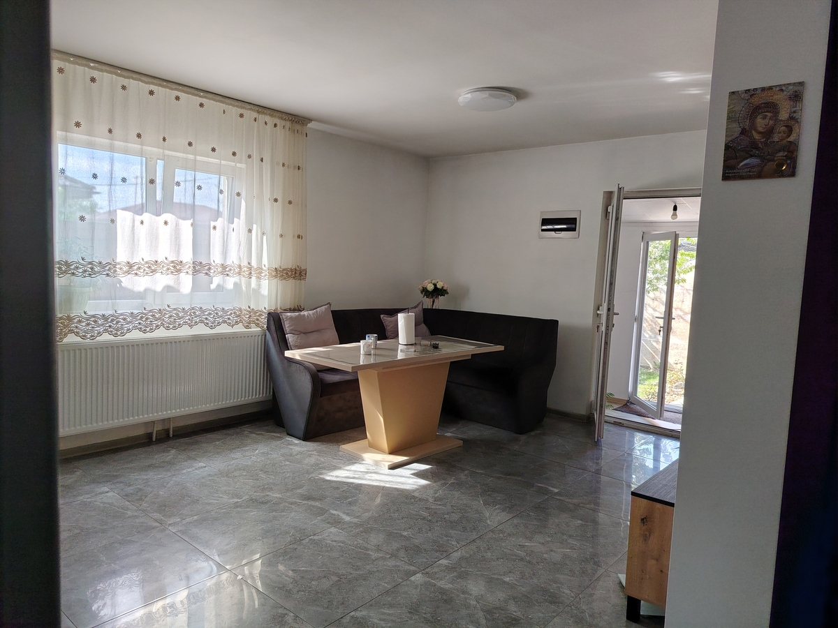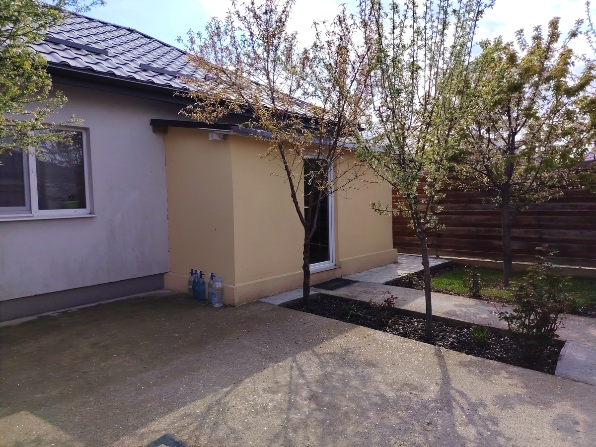 Proprietar vand casa individuala la curte 2 dormitoare, living cu bucatarie inclusa, baie, hol, curte 250 m amenajata pomi fructiferi, gazon si o anexa pentru depozitare,