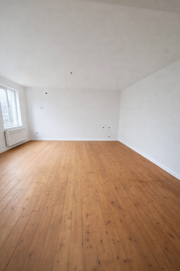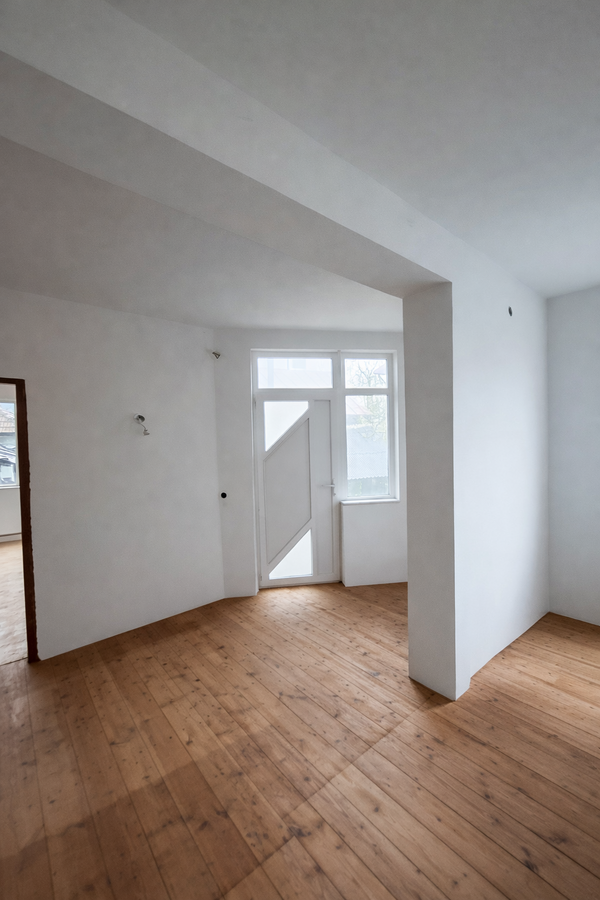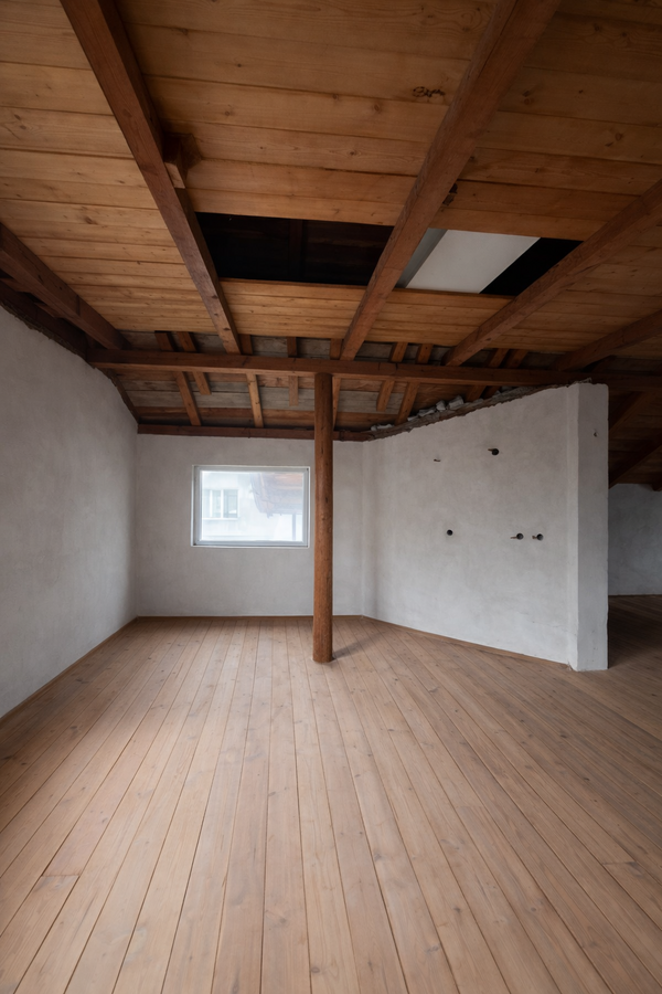planseu din beton peste parter, cu pardoseala superba din lemn la mansarda