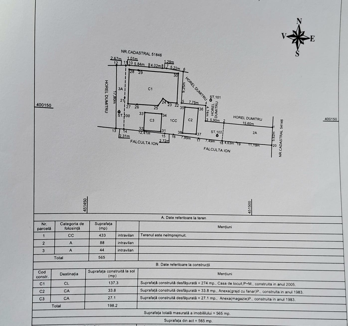 Casa de locuit P+M constructie 2005 cu o suprafata construita la sol de 137,5 m iar suprafata desfasurata este de 274 m , cu o inaltime a parterului de 2,60 m si a mansardei de 2,35 m , pe un teren in suprafata de 565 m ce beneficiaza de acces facil din artera principala, intrarea realizandu-se pe o cale de acces cu latimea de 5,62 m.