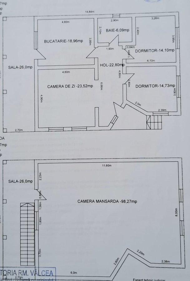 Mansarda: 137 m construiti din care 98,27 m utili + terasa de 26 m