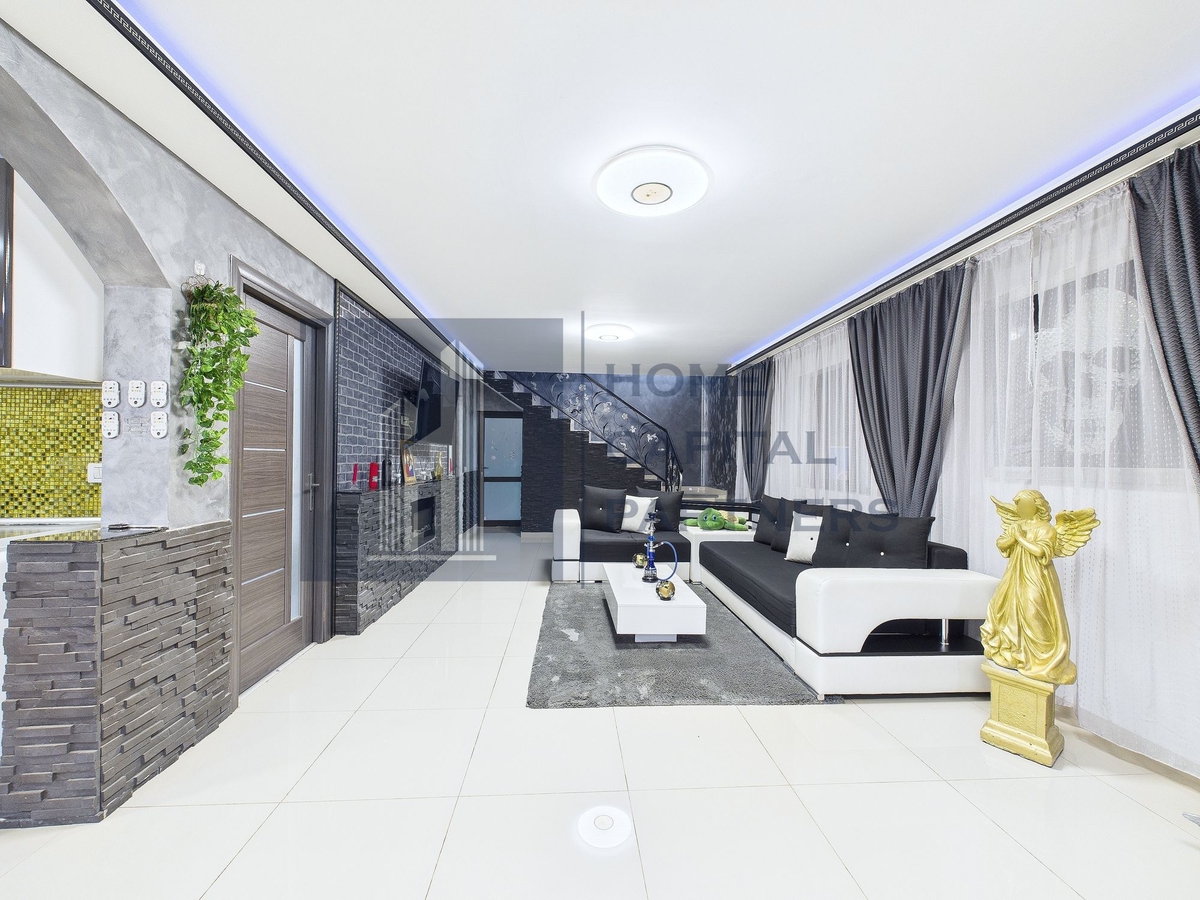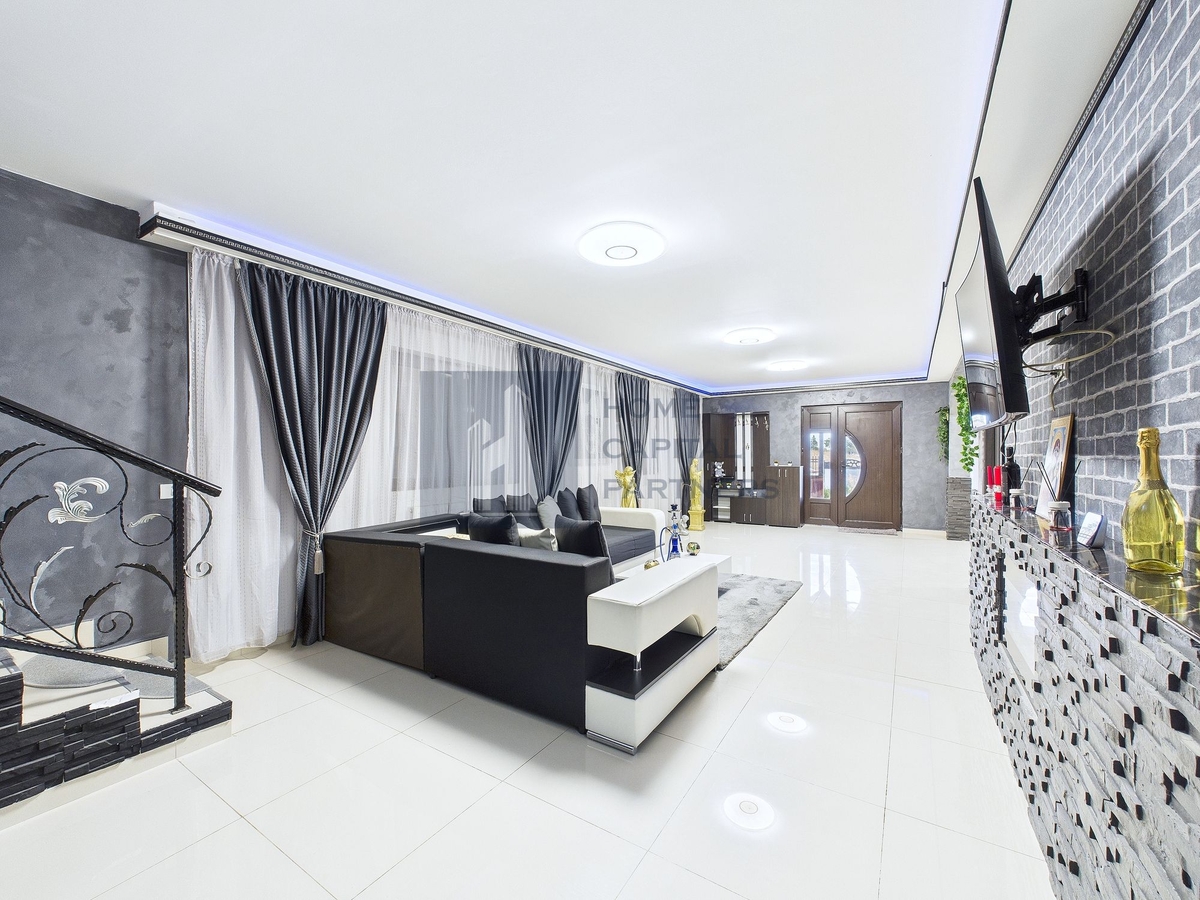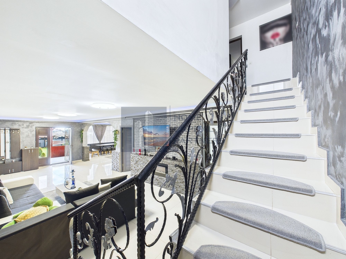 Parterul este dedicat zonei de zi: living cu lumina naturala si iesire catre terasa de la parter, loc optim pentru masa in aer liber. Bucataria este separata, cu spatiu functional, iar baia de serviciu deserveste zona de zi. Etajul reuneste 4 dormitoare, configurate pentru odihna si intimitate, o baie si un balcon ce completeaza confortul nivelului superior.