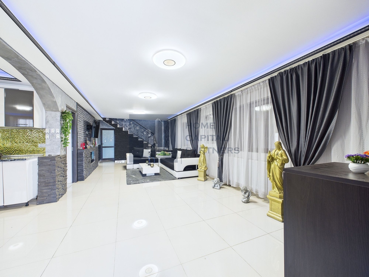 Propunem la vanzare o casa P+1 gandita pentru confortul unei familii, dar potrivita si pentru cupluri sau persoane care cauta spatiu suplimentar pentru lucru de acasa. Suprafata utila de 165 mp este impartita eficient pe doua niveluri, pe un teren de 500 mp.
