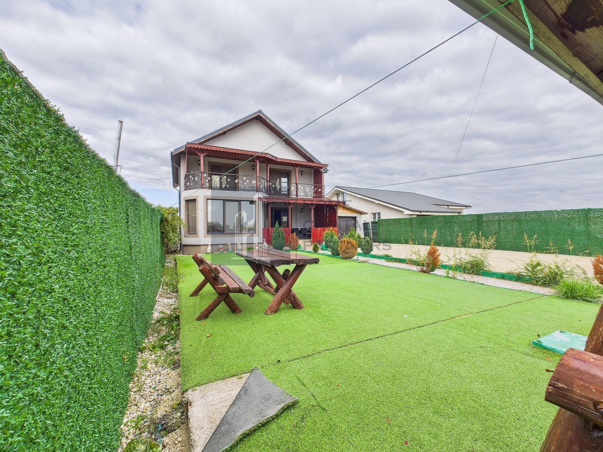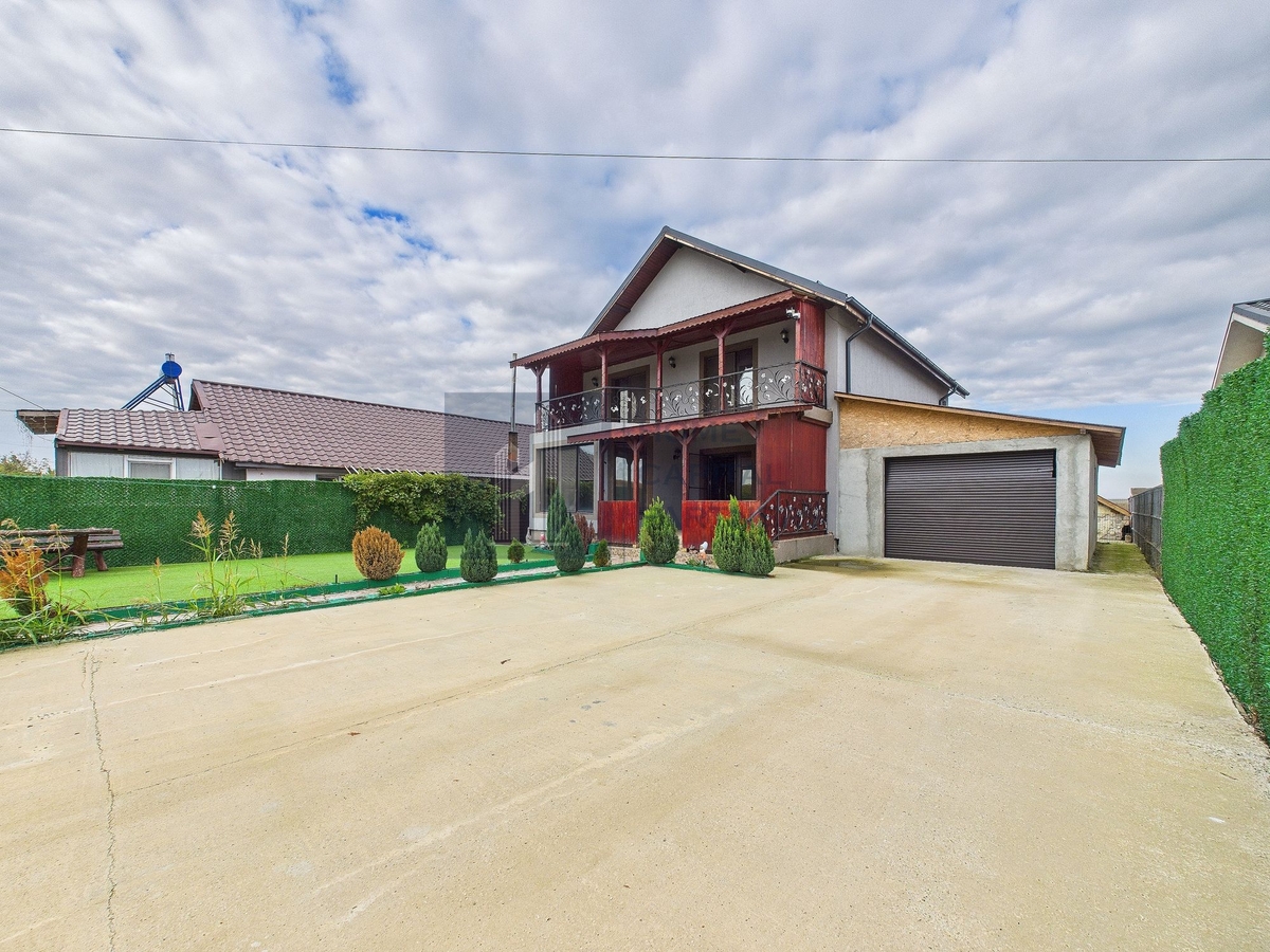 Exteriorul ofera o curte utilizabila si doua garaje care asigura parcare acoperita si spatiu de depozitare. Configuratia cu 6 camere permite scenarii flexibile (birou, hobby sau camera pentru oaspeti).