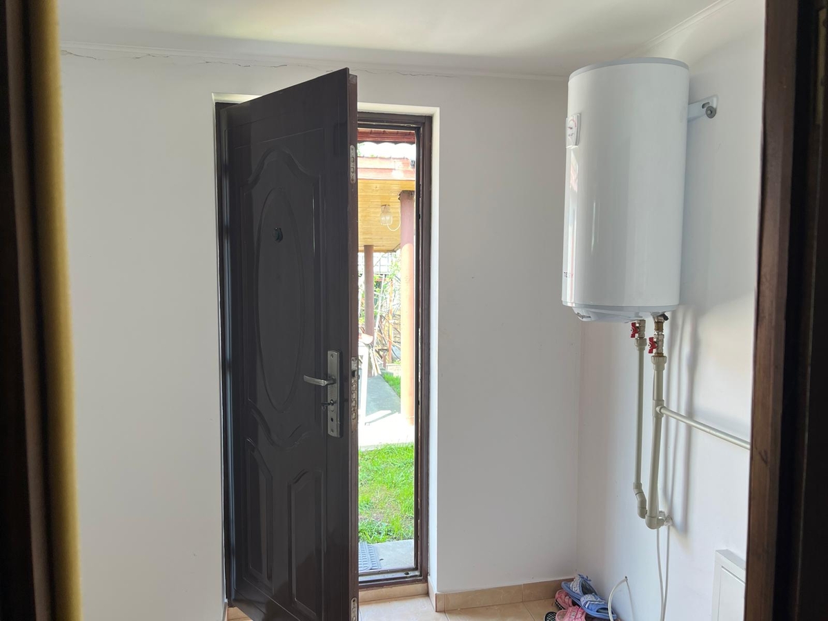 Gresie, faianta, parchet, termopane, izolatie de 10 cm, acoperis tip Lindab, centrala, curent electric, fosa septica, put cu hidrofor.