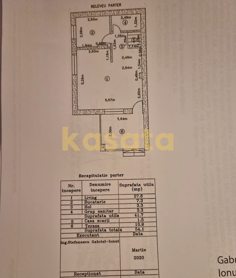 -Parter: terasa acoperita, living, bucatarie, grup sanitar