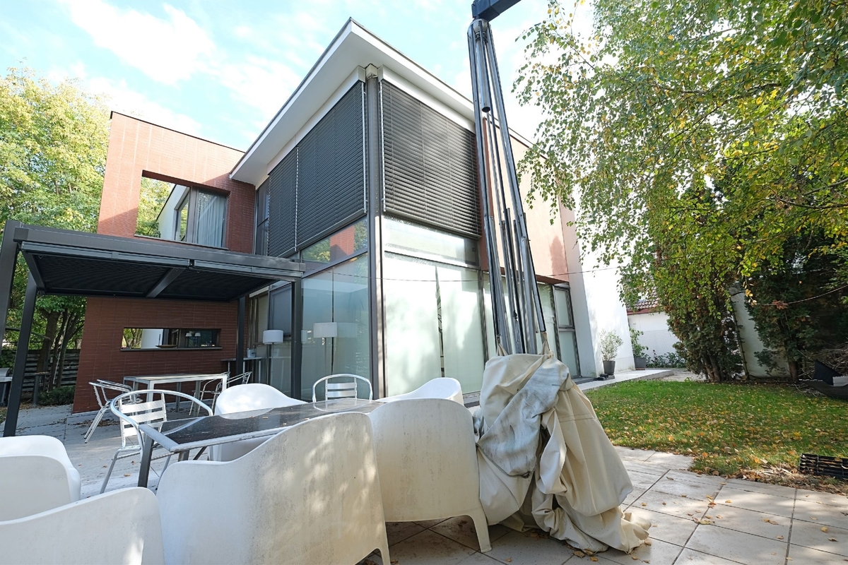 vanzare Vila personalizata, superba constructie 2007 structurata pe P+E compusa din: living, 5 dormitoare, 2 locuri de studiu, 1 bucatarie, 2 holuri, 3 bai, 1 wc de serviciu si 1 dressing, totul in suprafata utila de 245 mp. ce beneficiaza de toate utilitatile plus 1.400 mp. teren din care 1.100 mp. teren liber, curte individuala, amenajata cu rafinament, ornamentata cu plante exotice, flori, gazon, terasa de vara, zona de barbeque, piscina si parcare.
