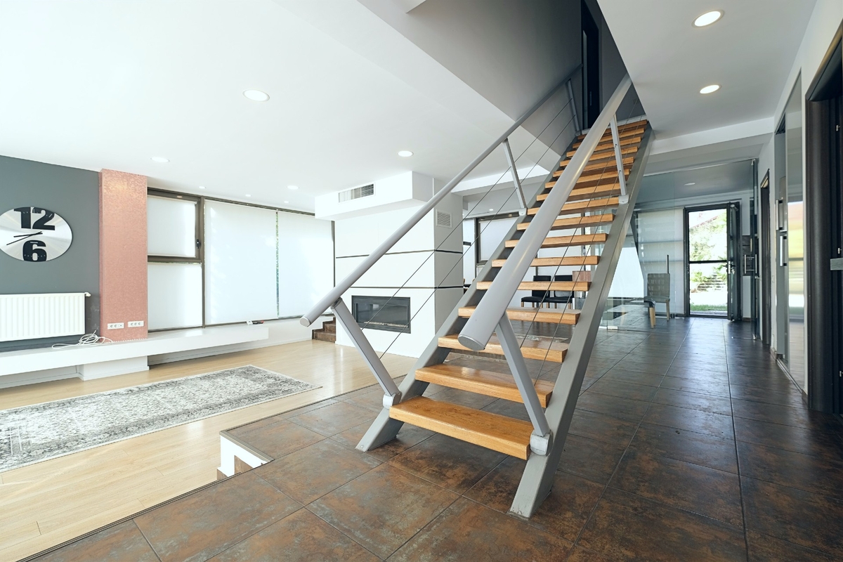 PARTER: living, 1 dormitor matrimonial, 1 dinning, 1 bucatarie, 1 wc de serviciu si hol.