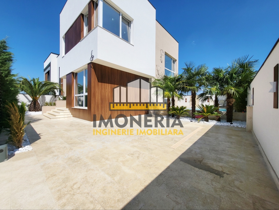 Vila din galeria foto, finalizata in 2025, poate fi solutia cautarilor tale. Arhitectura Mediteraneana si peisagistica au fost armonizate in asa fel incat sa te simti ca in vacanta de fiecare data cand ajungi acasa. Iar piscina exterioara iluminata RGB, impreuna cu iluminatul arhitectural, prezent atat pe fatada, cat si in curte, completeaza peisajul mai ceva ca la "Insula Iubirii". :p