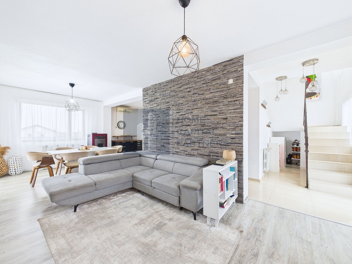 Este o casa potrivita pentru o familie care cauta liniste, intimitate si confort, dar si acces la facilitati premium, departe de agitatia orasului, cu conexiune usoara catre Bucuresti.