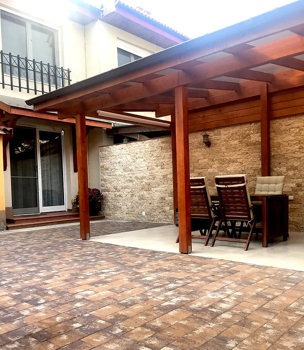 Confort & dotari premium: incalzire in pardoseala, parchet din lemn masiv, ferestre mixte lemn (interior) + PVC (exterior), aer conditionat centralizat, curte pavata, amenajata cu bucatarie de vara si terasa acoperita