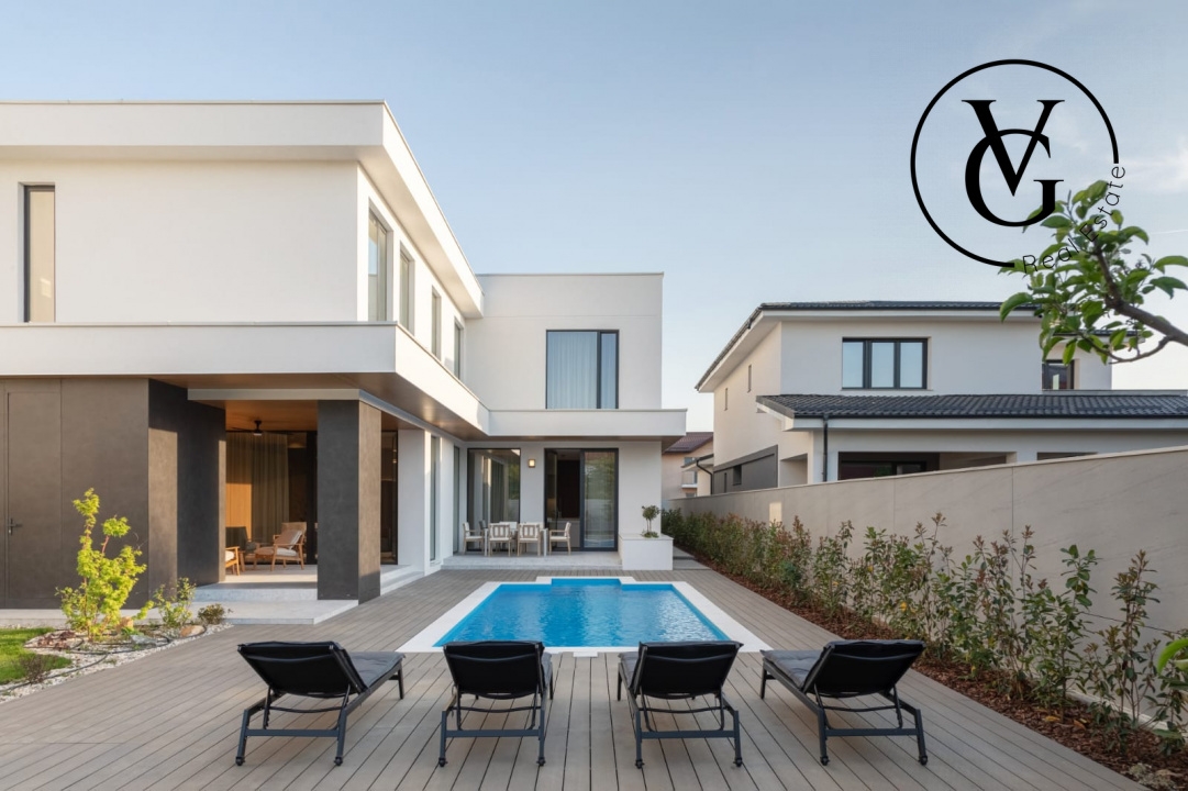 VG Real Estate va propune spre achizitionare o vila individuala amplasata in intr-o zona de case, ce dispune de curte proprie, piscina incalzita, spalatorie, 1 garaj, 2 terase acoperite si 3 locuri de parcare in curte!